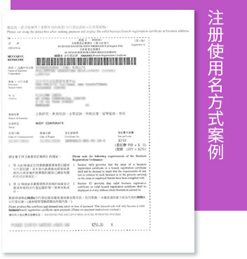 香港公司分行/使用名注册